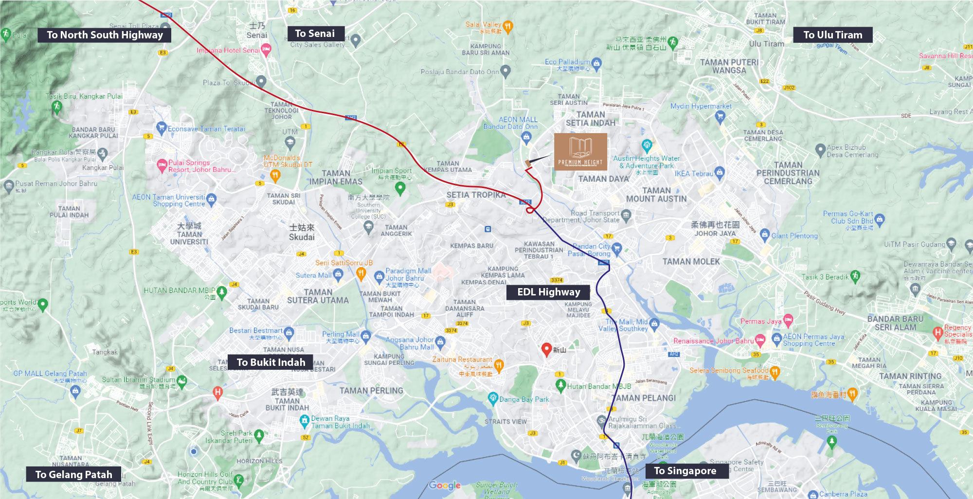 PREMIUM HEIGHT RESIDENCE 位于一个非常具有战略意义的位置,将为居民带来便利的环境。本项目地点成熟,周边配套设施和交通系统完善发达。
